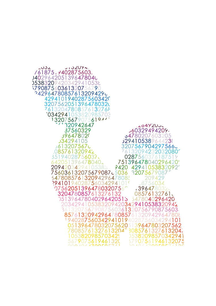 Within the layered flow of colors and digits, a silhouette emerges —